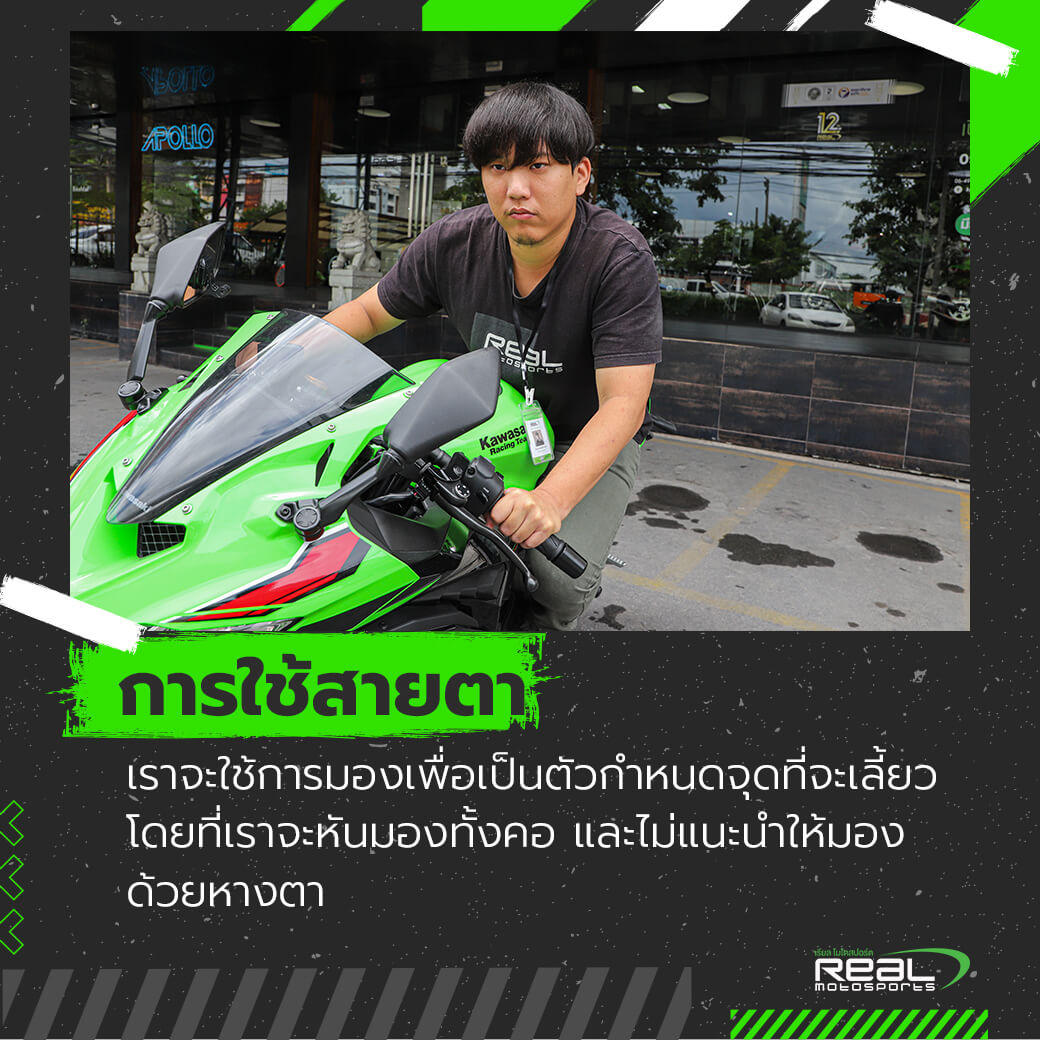 สายตาเป็นตัวกำหนดว่าเราจะไปจุดไหน จะเลี้ยวซ้ายก็ให้หันมองทางซ้ายหรือจะไปทางขวาก็แค่หันมองไปทางขวา เราไม่ควรหันมองแค่หางตาเท่านั้น