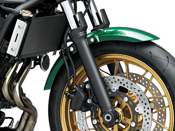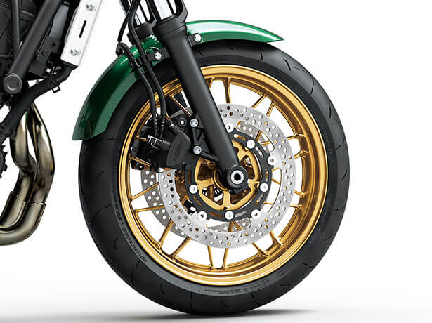 ล้อแม็กหล่อขึ้นรูปคล้ายกับที่ใช้ใน Z900RS มาพร้อมดีไซน์แบบก้านแบนเล็กเพื่อให้คล้ายคลึงกับล้อแบบซี่ลวดสไตล์คลาสสิค ออกแบบโดยใช้เทคโนโลยีวิเคราะห์ขั้นสูงจากคาวาซากิ ตัวล้อให้สมดุลระหว่างน้ำหนักที่เบาและความสวยงาม เสริมทั้งการควบคุมและดีไซน์ให้มีความโดดเด่นเหมาะกับการเป็นรถจักรยานยนต์สไตล์เรโทร